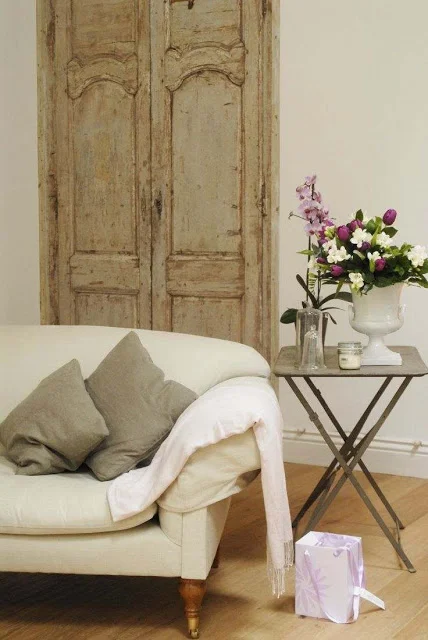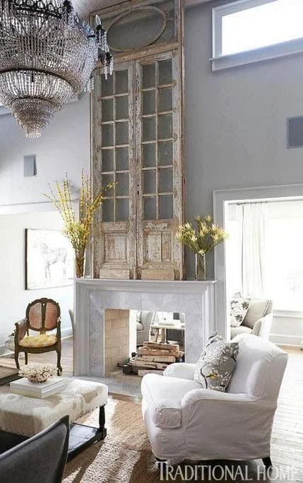 2. We love antique doors used as art. They are beautiful leaning or hanging on walls and add an interesting element to an interior. This is a great way to use a beautiful door that may not be in good enough working condition.